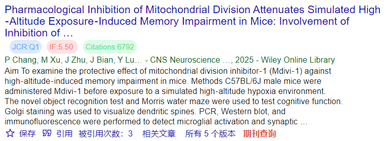 文献支持:塔望科技®动物低压氧舱 ProOx-850